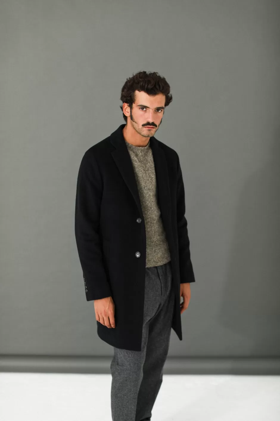 Manteau mi-long confectionné dans un drap de laine et cachemire au finissage brossé. Un tissu d’une douceur rare dont la densité de tissage assure à ce manteau un tombé impeccable et une belle résistance dans le temps. Nous avons travaillé ses volumes afin de vous offrir une pièce à la coupe classique et contemporaine à la fois : ajustée aux épaules et confortable au niveau du buste. Côté finitions, nous avons opté pour une fermeture à deux boutons en corne dans le respect de son aspect minimaliste et nous avons entièrement doublé l’intérieur dans un tissu poly viscose afin de faciliter les mouvements lorsque vous le portez.