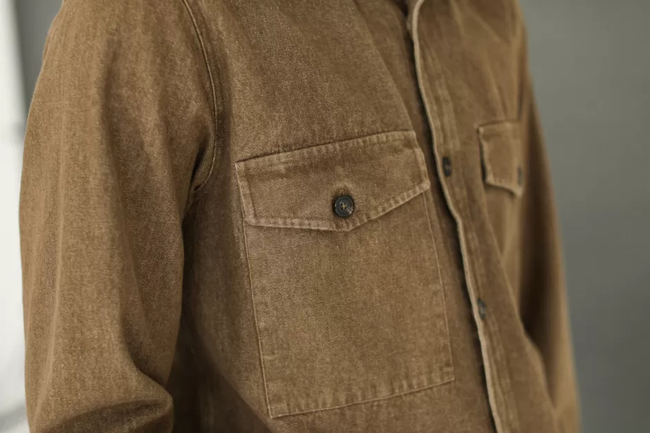Surchemise à poches en denim. Le tissu que nous avons sélectionné présente de jolies irrégularités, comme celles des tissus anciens authentiques, et sa coupe, légèrement ajustée, conserve le confort qui nous importe tant.